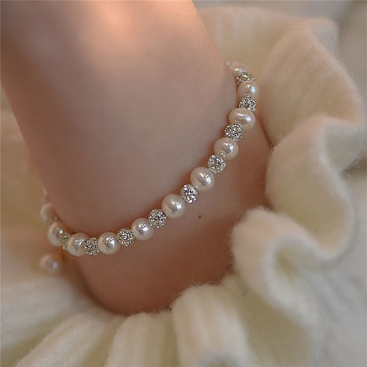 Bright Planet Bracelet with Diamond Balls & Freshwater Pearls – Cold Wind Design