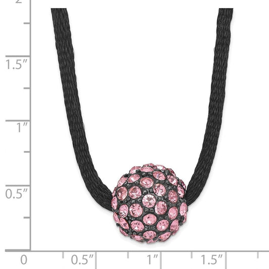 1928 Jewelry Black-Plated Pink Glass Fireball Necklace with Satin Cord