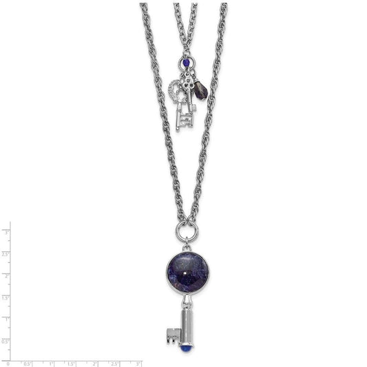 1928 Silver-Tone Necklace – 3 Key Pendants with Crystal & Sodalite