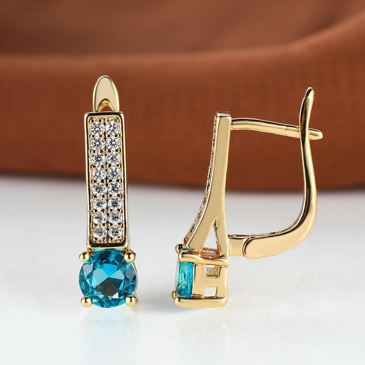 Luxury Gold Color Aqua Blue Stone Drop Earrings – Elegant Wedding Jewelry