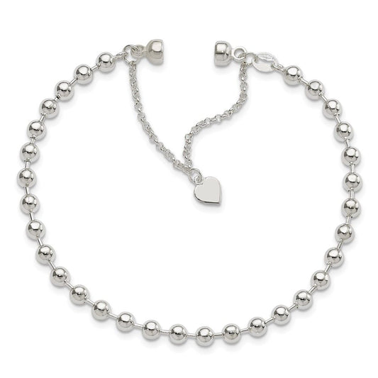 Sterling Silver 4MM Beaded Heart Charm Bracelet – Magnetic Clasp