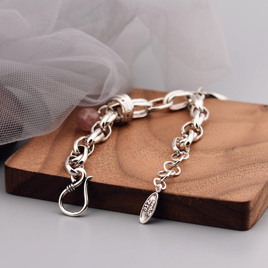 Strawberry Crystal Thai Silver Bracelet – Retro Heavy Style for Women