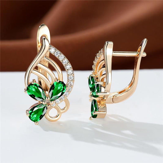 Golden Butterfly Hollow Teardrop Aqua Stone Drop Earrings – Anniversary Gift