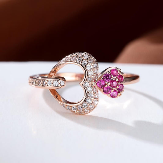 18K Gold Plated Double Heart Ring with Pink Zircon – Romantic Gift