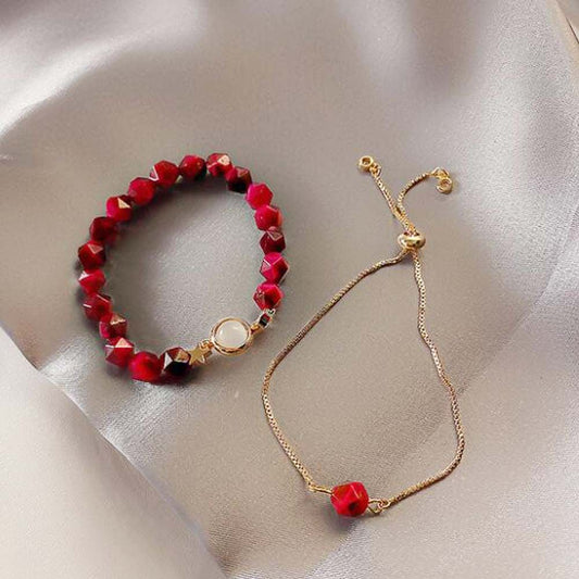 Red Stone Star Charm Bracelet – Women's Layered Link Chain Jewelry