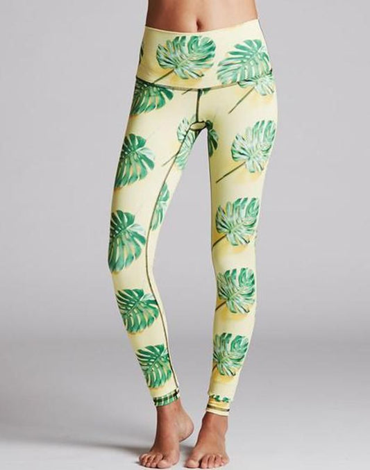 Green Leafs Women's High Waist Full-Length Yoga Workout Leggings