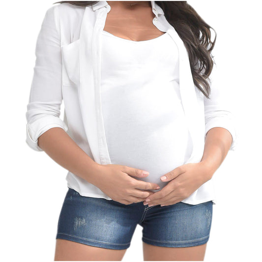 Maternity Denim Shorts – Baby Bump Support & Stretch Waistband