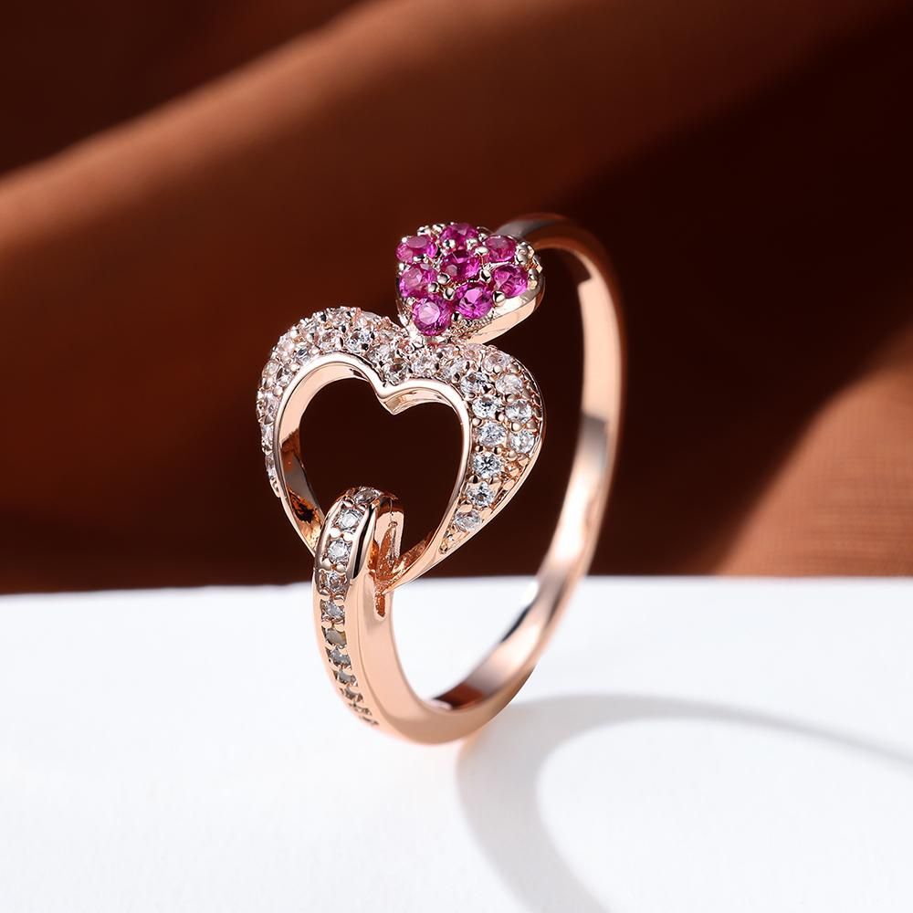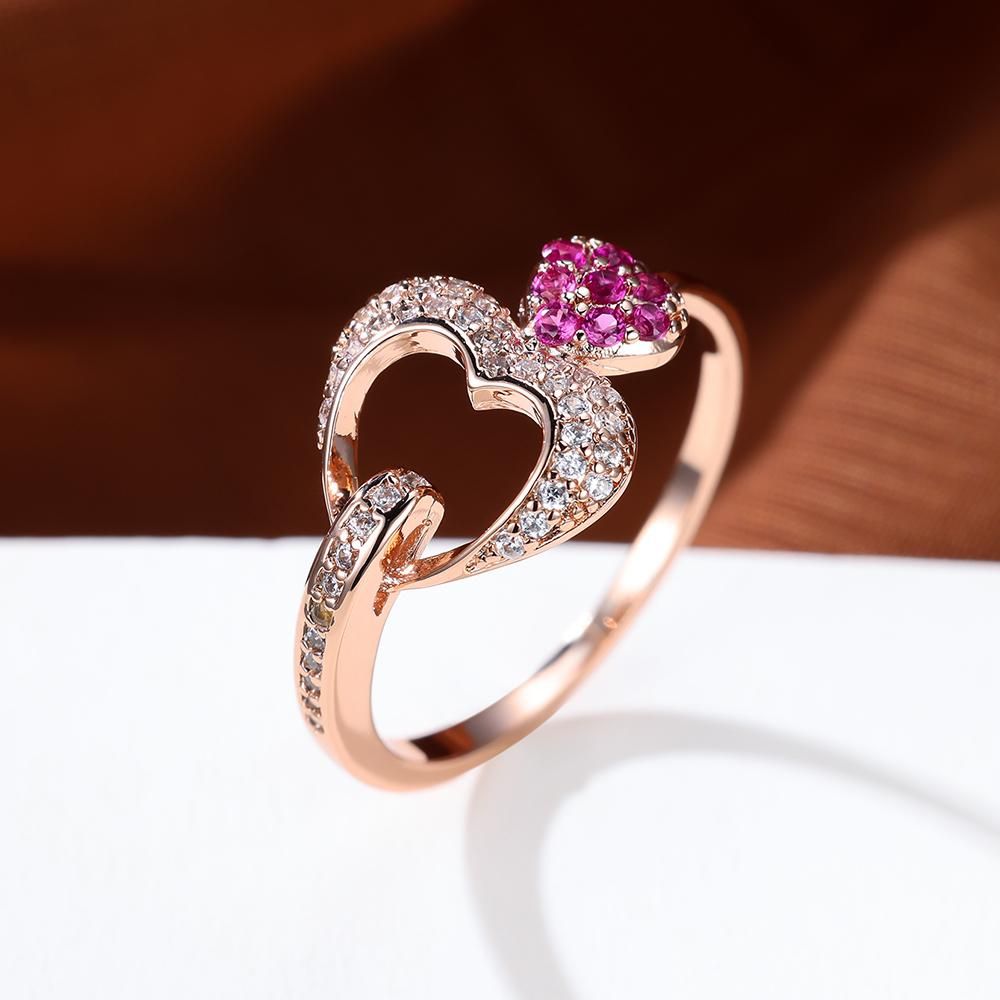 18K Gold Plated Double Heart Ring with Pink Zircon – Romantic Gift