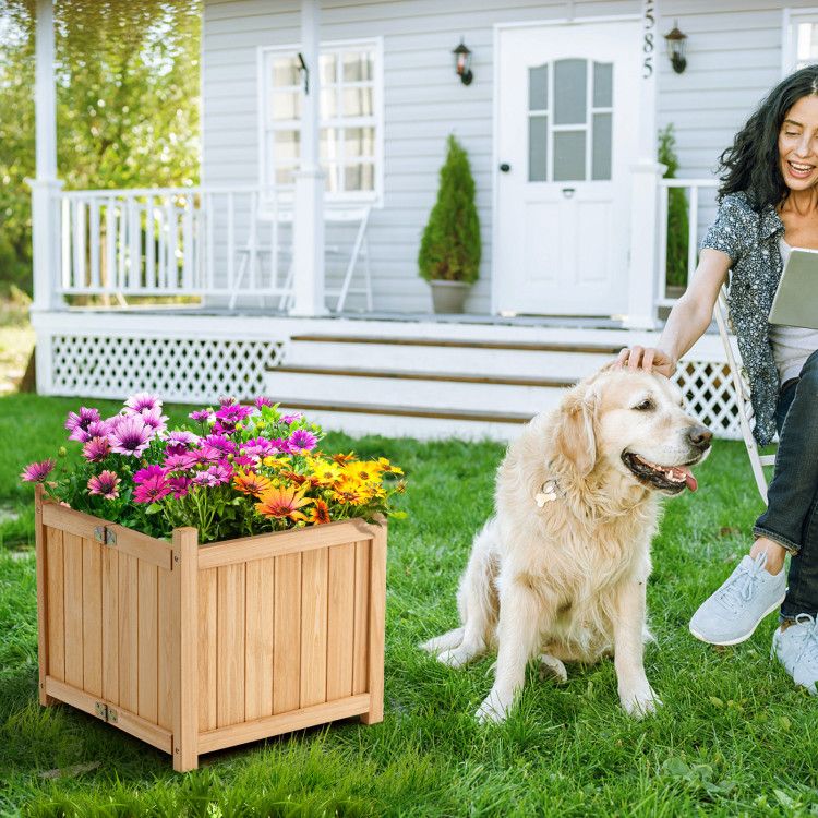 Folding Square Fir Wood Raised Garden Bed with Removable Bottom