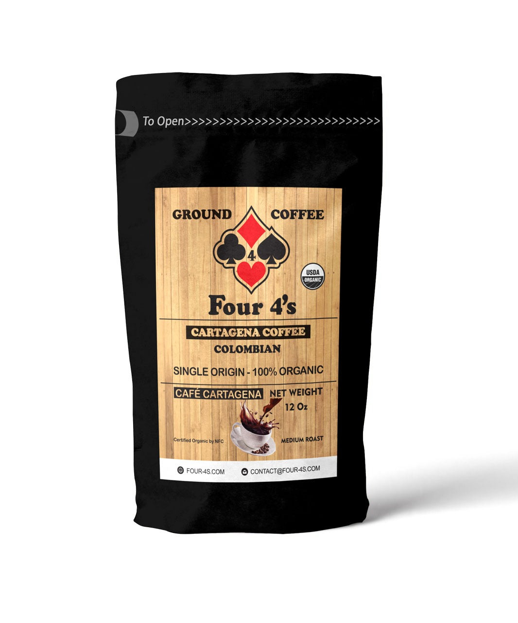 Four 4’s Cartagena Organic Medium Roast Ground Coffee. 12 Ounces..