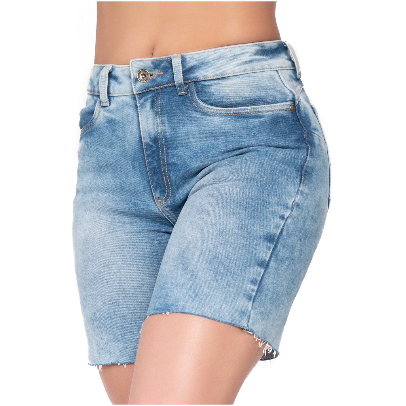 High-Rise Denim Butt Lifter Shorts – Distressed Jean Shorts